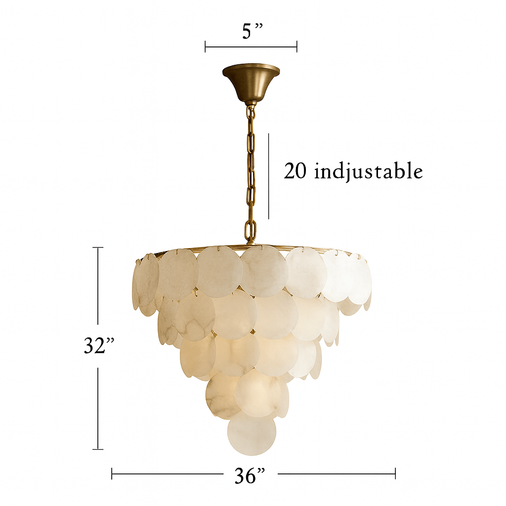Crafted with high-quality natural marble and brass, this chandelier exudes elegance and durability. The soft light emitted adds a warm and inviting ambiance to any room. Elevate your home decor with this modern and timeless lighting fixture.