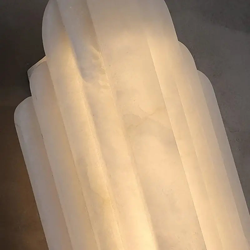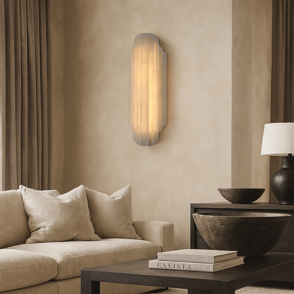 Hand-carved from solid natural marble, the Arina Marble Sconce transforms walls into architectural art. Its stepped, fluted silhouette—reminiscent of Art Deco skyscrapers and contemporary gallery lighting—glows from within, creating a soft, ethereal radiance. When illuminated, the marble’s organic veining reveals layers of depth and texture, making every piece truly one-of-a-kind.