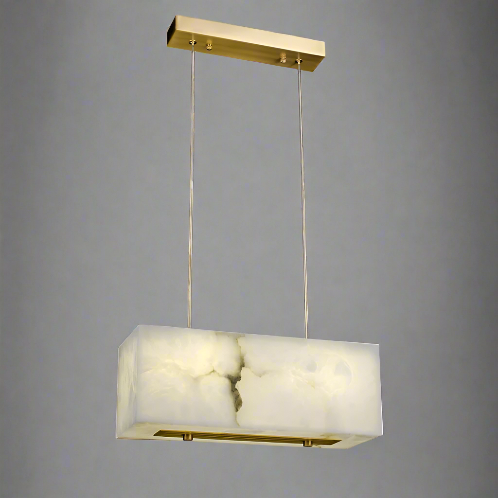 Refined yet understated, the Leroy Marble Chandelier embodies the quiet luxury of natural materials and modern form. Sculpted from solid marble and framed in electroplated brass, this piece radiates timeless sophistication. Its linear silhouette and softly diffused light create a warm, ambient glow that transforms dining spaces into intimate settings. Each fixture is unique, showcasing the organic veining and subtle tonal variations inherent to genuine marble. Designed with versatility in mind, the adjustable suspension allows it to complement a range of ceiling heights and interiors—from contemporary dining rooms to open-concept kitchens.
