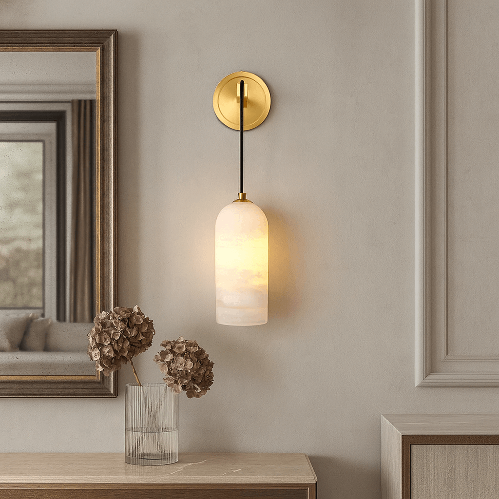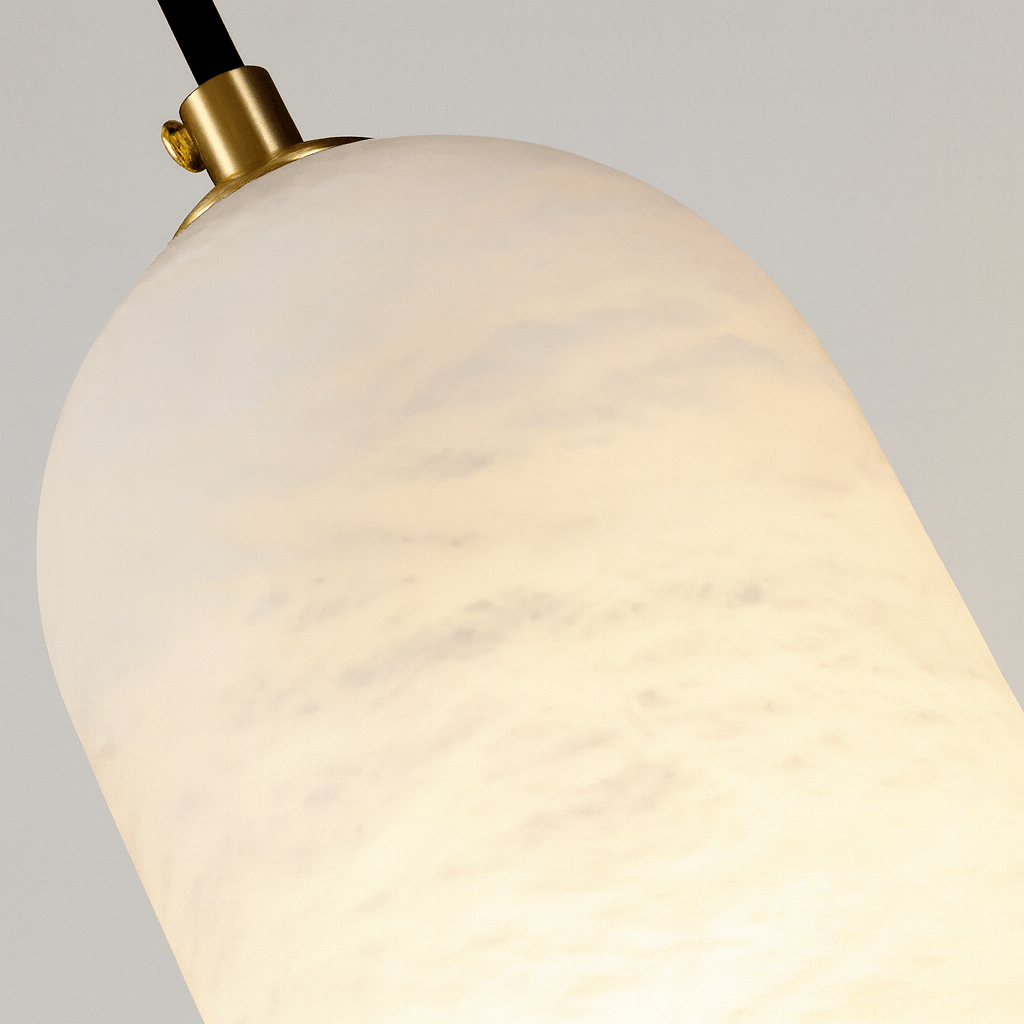 The Lucera Marble Pendant Sconce distills the essence of refined lighting into a sculptural pendant suspended in silence. A cylindrical shade, hand-carved from solid Spanish marble, is delicately suspended from a minimalist copper arm. The stone’s natural veining is softly illuminated from within, casting an ambient glow that is both grounding and ethereal.