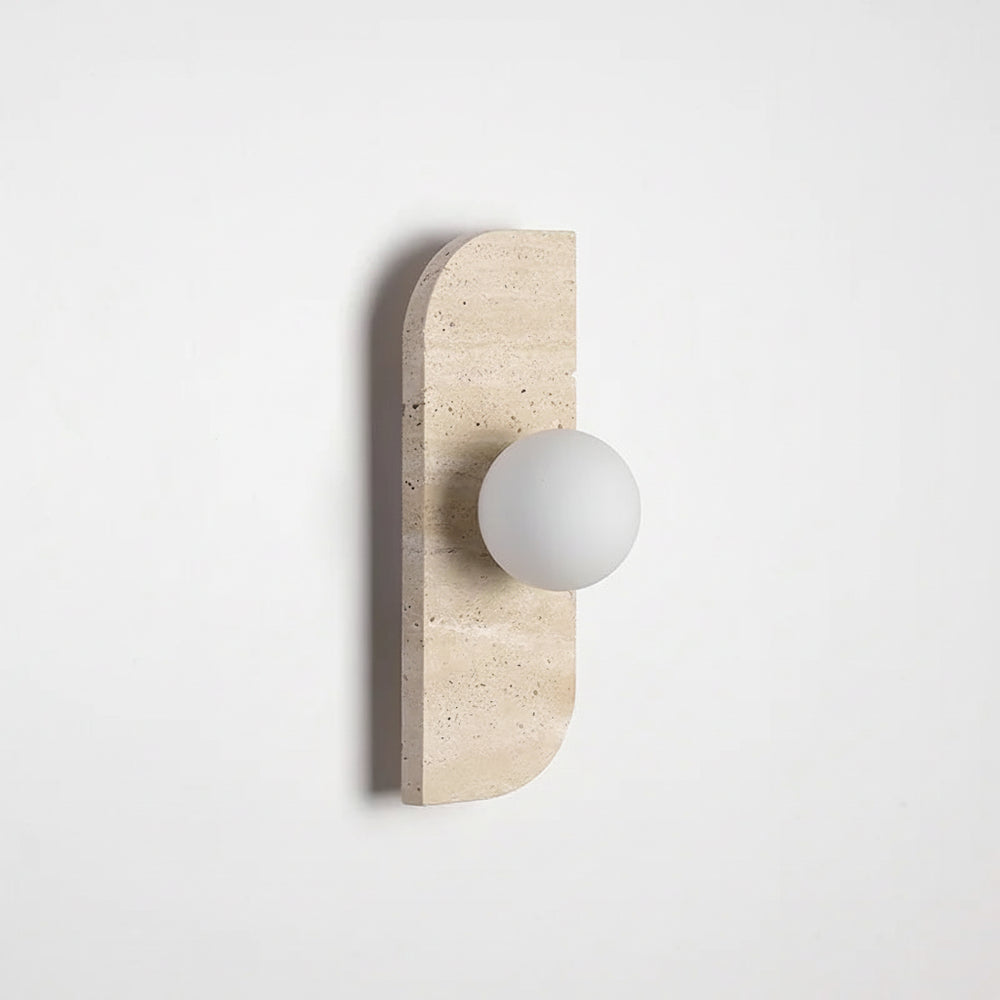 The Sonte Travertine Sconce by Morsale.com features a vertical beige stone base with three evenly spaced round LED bulbs, creating soft, elegant lighting on any wall.