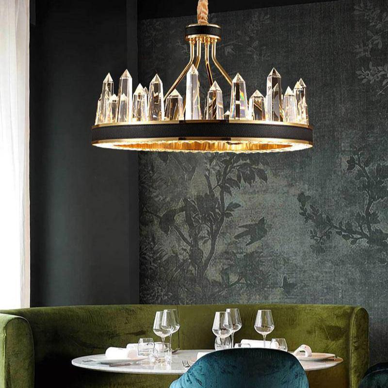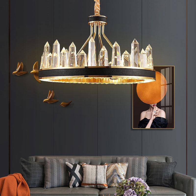 As much a modern art piece as it is a source of light, this on-trend chandelier makes a statement in any space. High Quality Electroplated Stainless Steel, Premium K9 Crystals, Exquisite Craftsmanship, Energy Efficient LED Light Source. Out of a classic, vintage industrial style and some modern flair evolved this stunning piece. This Crystal Modern Wheel Chandelier is a designer's dream. It will create a beautiful show piece for any interior.