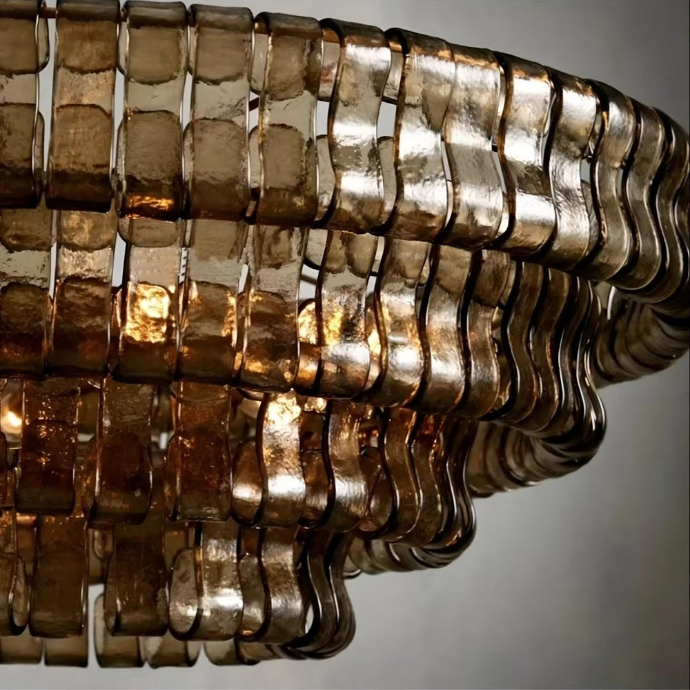 Please note: Due to lighting conditions and the warm glow passing through the glass in the photos, the fixture may appear amber, but the actual glass color is smoke grey.