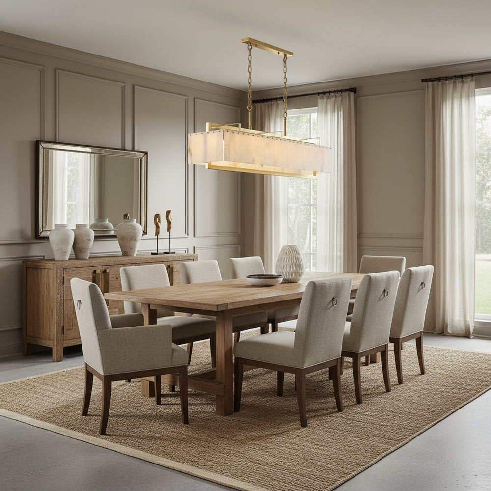 The Stanton Chandelier is a masterful fusion of natural luxury and modern design. Handcrafted from solid brass and crowned with hand-carved marble shades, its sculptural form radiates quiet sophistication. The brushed finish enhances the metal’s warm patina, while the marble’s subtle veining lends each piece a unique character. Designed with dimmable LED illumination and smart functionality, Stanton delivers both atmosphere and convenience. Whether illuminating a dining table or anchoring a contemporary living space, this chandelier serves as an enduring focal point of style and substance.