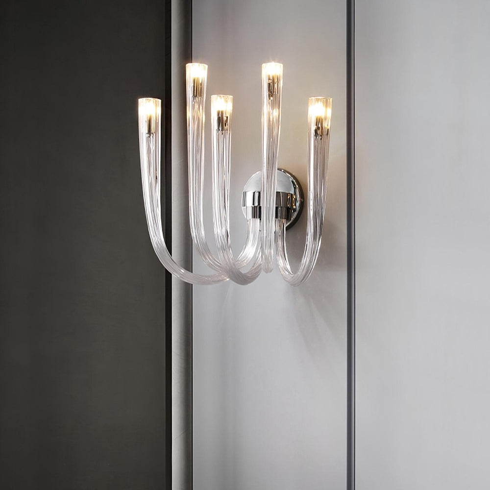 Create the perfect atmosphere for any setting with this sleek, contemporary wall sconce from Morsale. Crafted from designer glass, this wall sconce is a modern-day classic that adds sophistication and style to your space. The pristine glasswork accentuates any wall with a warm, glowing ambiance. The Candela Designer Glass Wall Sconce adds a touch of elegance to any room and the perfect balance of a contemporary-classic vibe. Embrace the beauty of modern design with this captivating and stylish wall sconce.