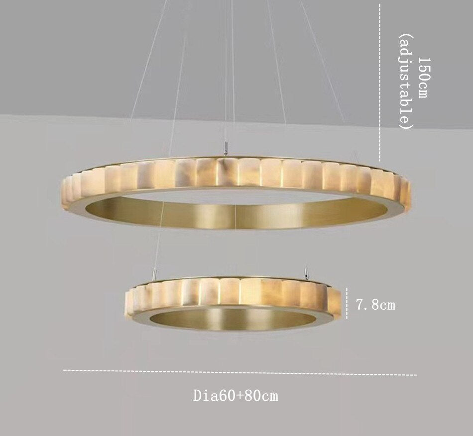Designed for living rooms, dining spaces, hotels, hallways, and bedrooms, this chandelier features integrated LED strip lighting for energy-efficient illumination. With adjustable hanging wires and dual ring sizes (31" and 23"), it offers a dynamic and sculptural presence, perfect for enhancing modern interiors.
