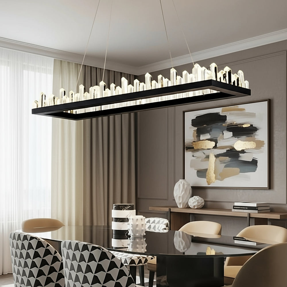 Regular price $1,389.00The Villa Crystal Dining Room Chandelier is a refined lighting centerpiece designed to enhance both residential and commercial interiors. With its sleek linear silhouette, this chandelier combines a modern stainless steel frame with luxurious clear crystal elements. The integrated LED light source offers brilliant, energy-efficient illumination, while the adjustable chain allows for perfect height customization in any space.