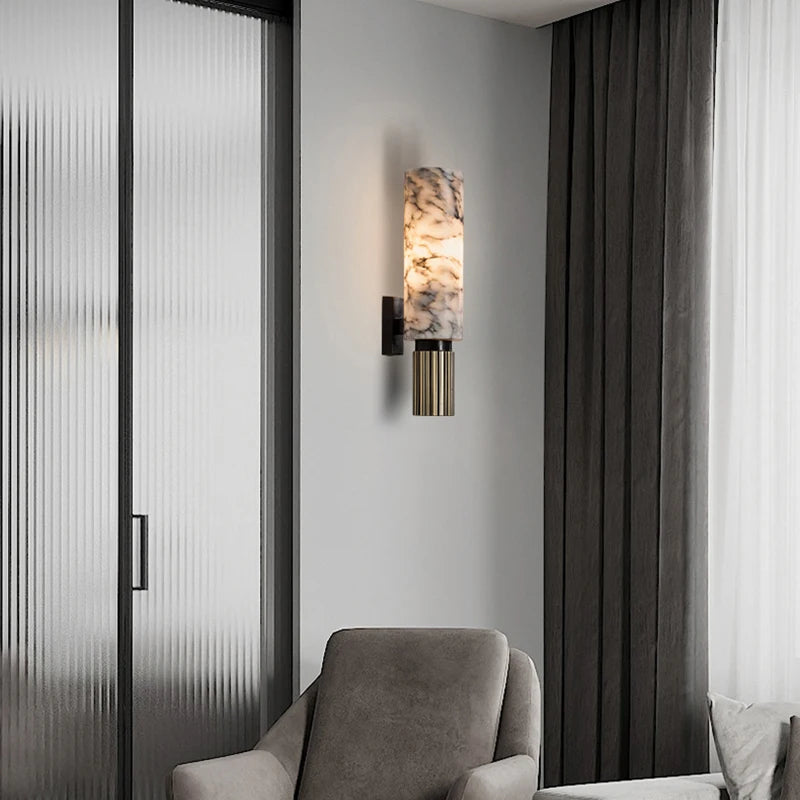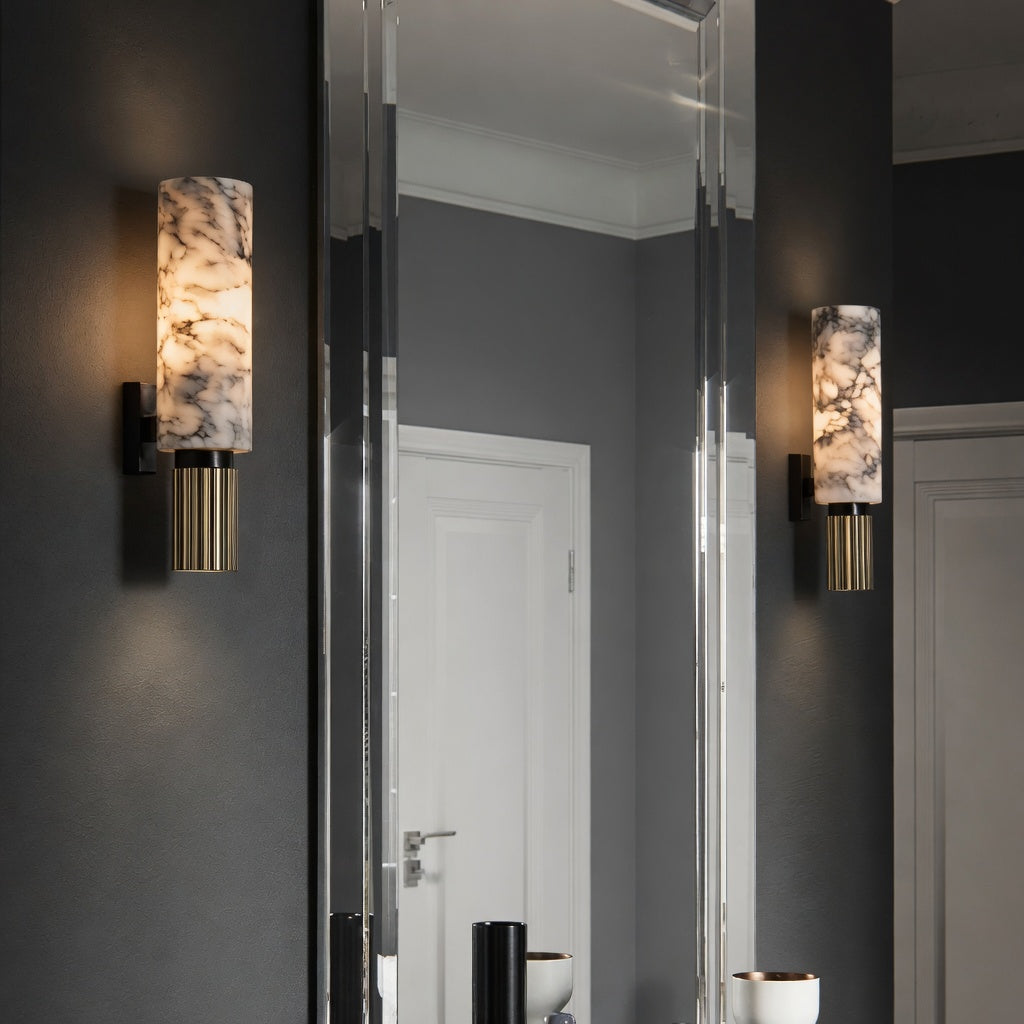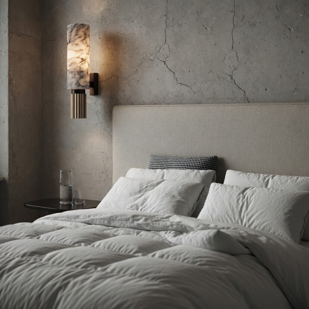 Moonshade™ Natural Marble Sconce featuring unique marbled design and soft ambient lighting on wall